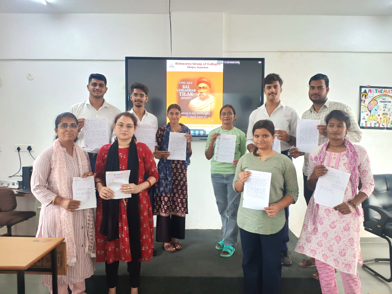 ऐश्वर्या कॉलेज में महान स्वतंत्रता सेनानी, समाज सुधारक और राष्ट्रवादी नेतालोकमान्य बाल गंगाधर तिलक की जयंती बड़ेही उत्साह और श्रद्धा केसाथ मनाई गई।कार्यक्रम की शुरुआत लोकमान्यतिलक जी के चित्रपर माल्यार्पण औरदीप प्रज्वलन के साथ हुई।इसअवसर पर एक विशेषकार्यक्रम का आयोजन कियागया। जिसमें विद्यार्थियों ने लेख लेखन,निबंध और नैतिक कहानियों केमाध्यम से तिलक जीके विचारों, उनके संघर्ष और उनके द्वारादिए गए प्रसिद्ध नारे"स्वराज मेरा जन्मसिद्ध अधिकार है और मैंइसे लेकर रहूंगा" को स्मरण किया।छात्रों द्वारा लिखे गए लेखों मेंतिलक जी के जीवनसे जुड़ी प्रेरक घटनाओं का उल्लेख कियागया। कई विद्यार्थियों नेउनकी राष्ट्रभक्ति, शिक्षा के प्रति समर्पणऔर सामाजिक चेतना को उजागर करतेहुए प्रेरणादायक कहानियां साझा कीं। कुछछात्रों ने पोस्टर और भाषण प्रतियोगिता के माध्यम सेभी तिलक जी को श्रद्धांजलिअर्पित की। कार्यक्रम के अंत मेंप्राचार्य डॉ. गायत्री तिवारी ने छात्रों कोतिलक जी के आदर्शोंको जीवन में अपनाने और देश सेवाके लिए सदैव तत्पर रहने की प्रेरणा दी।उन्होंने कहा कि बालगंगाधर तिलक स्वतंत्रता सेनानी के साथ साथ एकमहान विचारक और समाज केपथ-प्रदर्शक भी रहे।यह आयोजनविद्यार्थियों के लिए उनके चरित्र निर्माण और राष्ट्रभक्ति कीभावना को भी प्रबलकरने वाला सिद्ध हुआ।